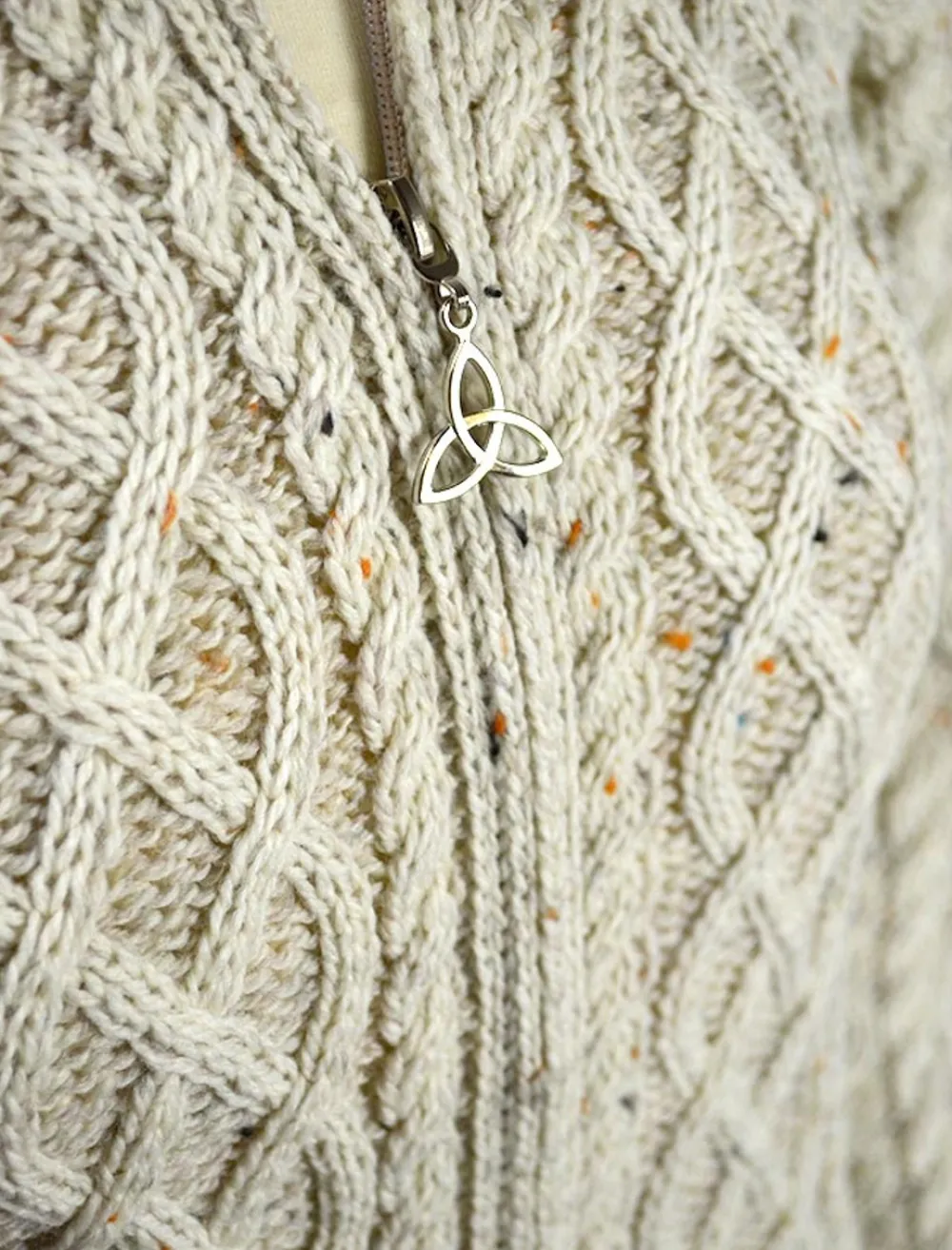 This Aran cardigan is brand new for the season and features the plated knitting technique, giving an attractive two-tone effect to the garment whilst further emphasising the beauty of the ancient Aran stitches.