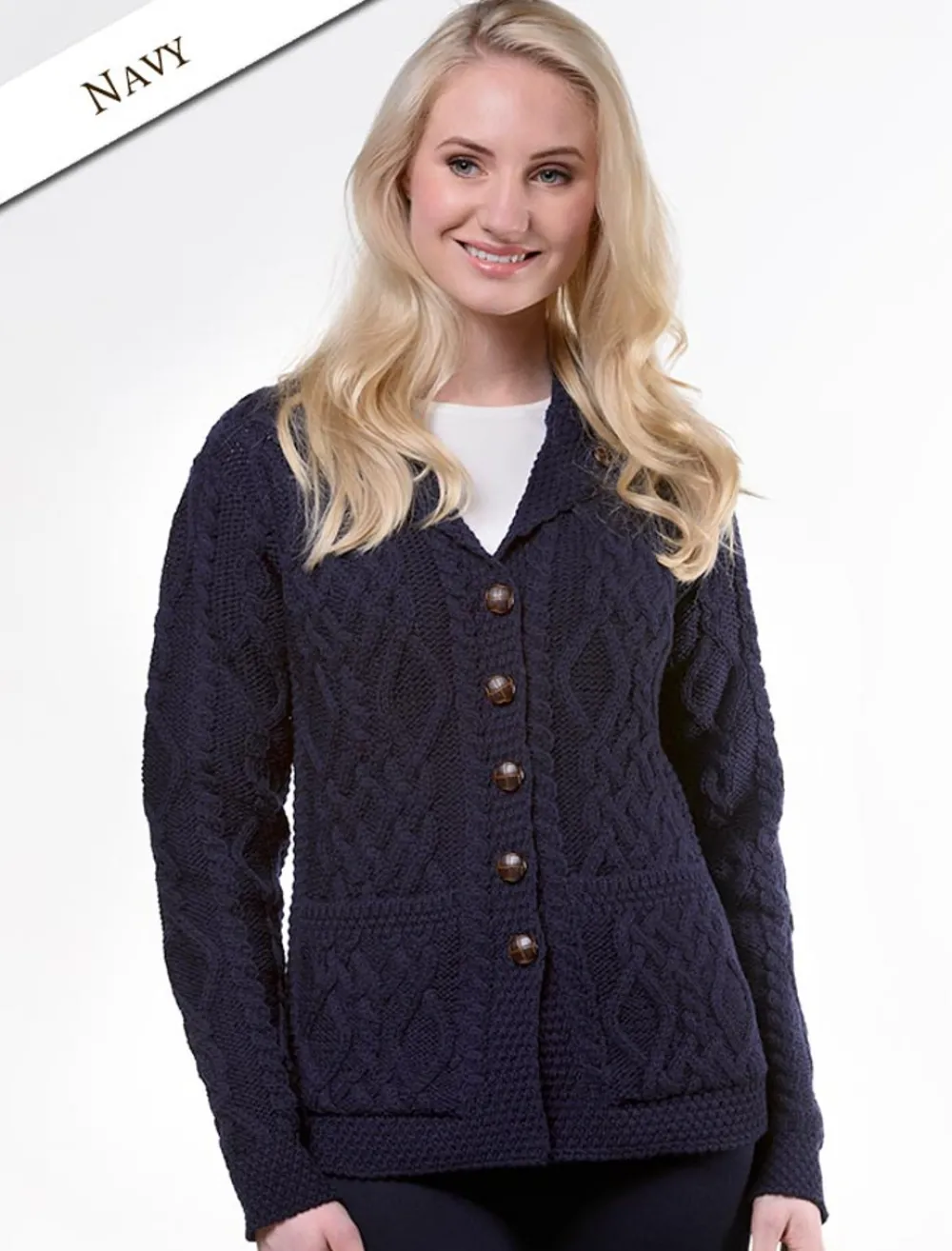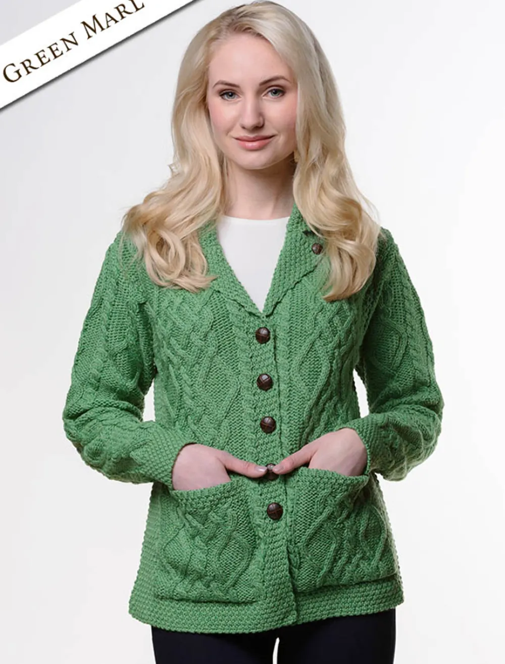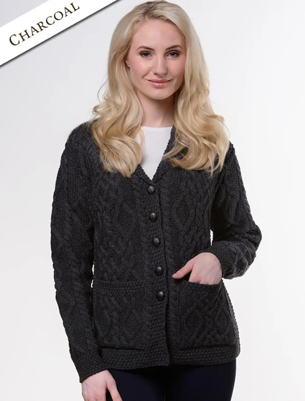 - Elegant Aran Cable knit design with wide front pockets