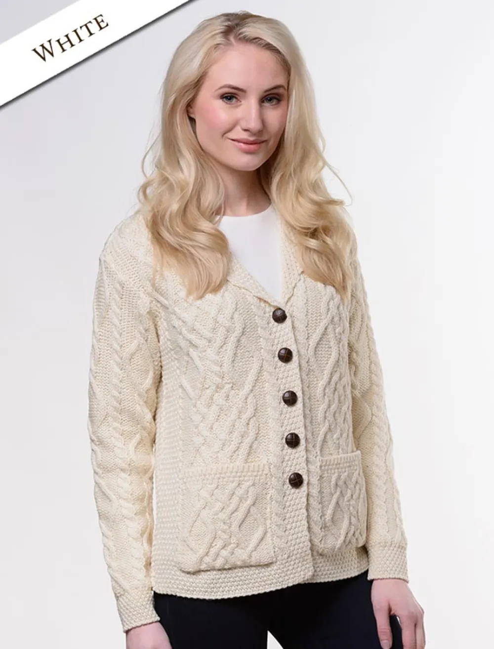 Revere Button Collar Aran Cardigan