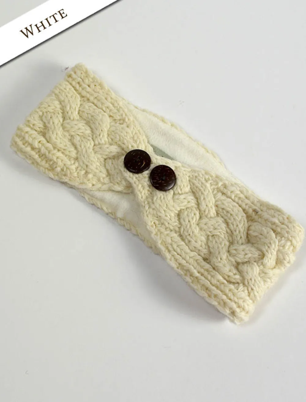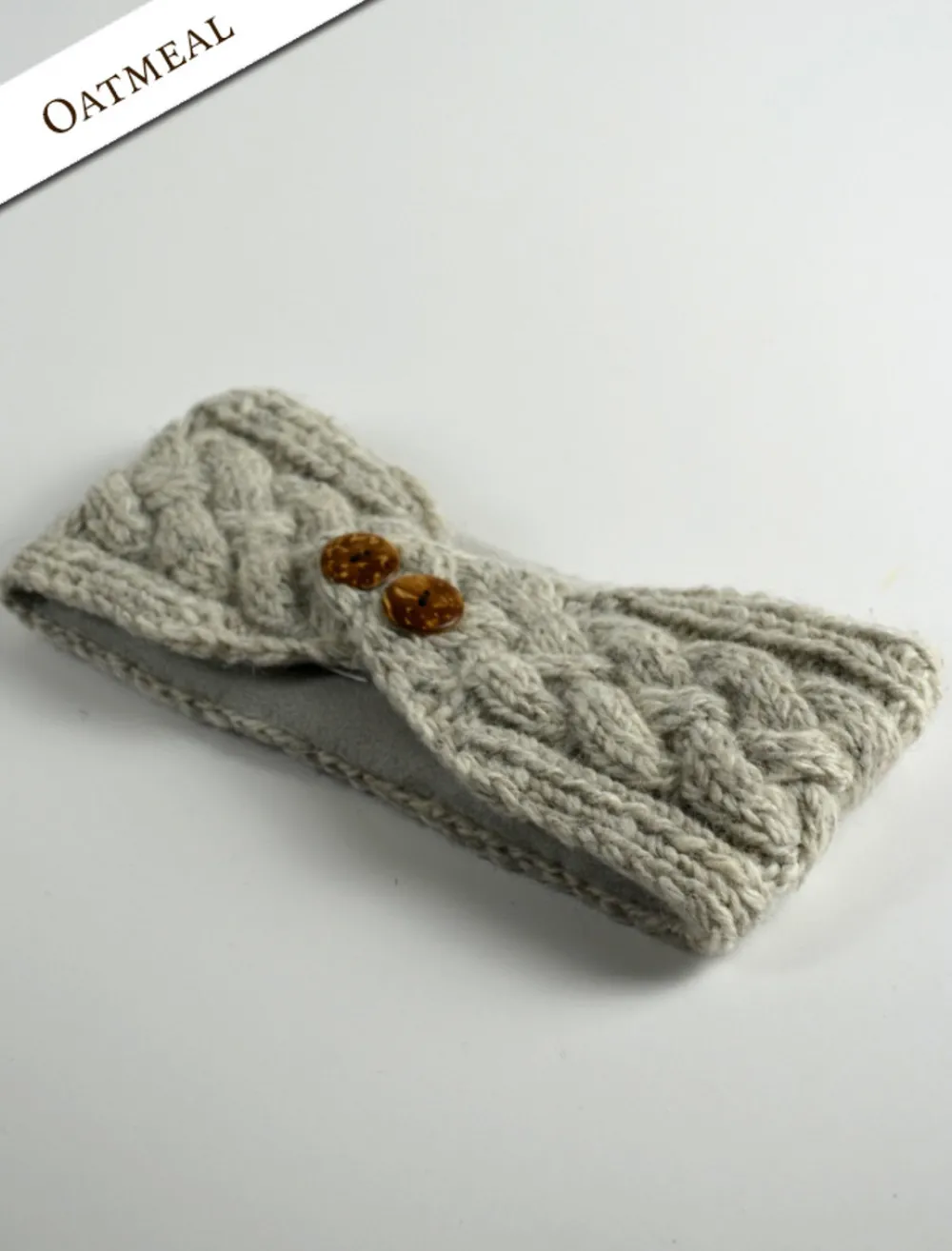 Handknit with 100% Merino WoolFleece linedLovely Cable pattern with two wooden effect buttonsOne Size Fleece Lined Aran …