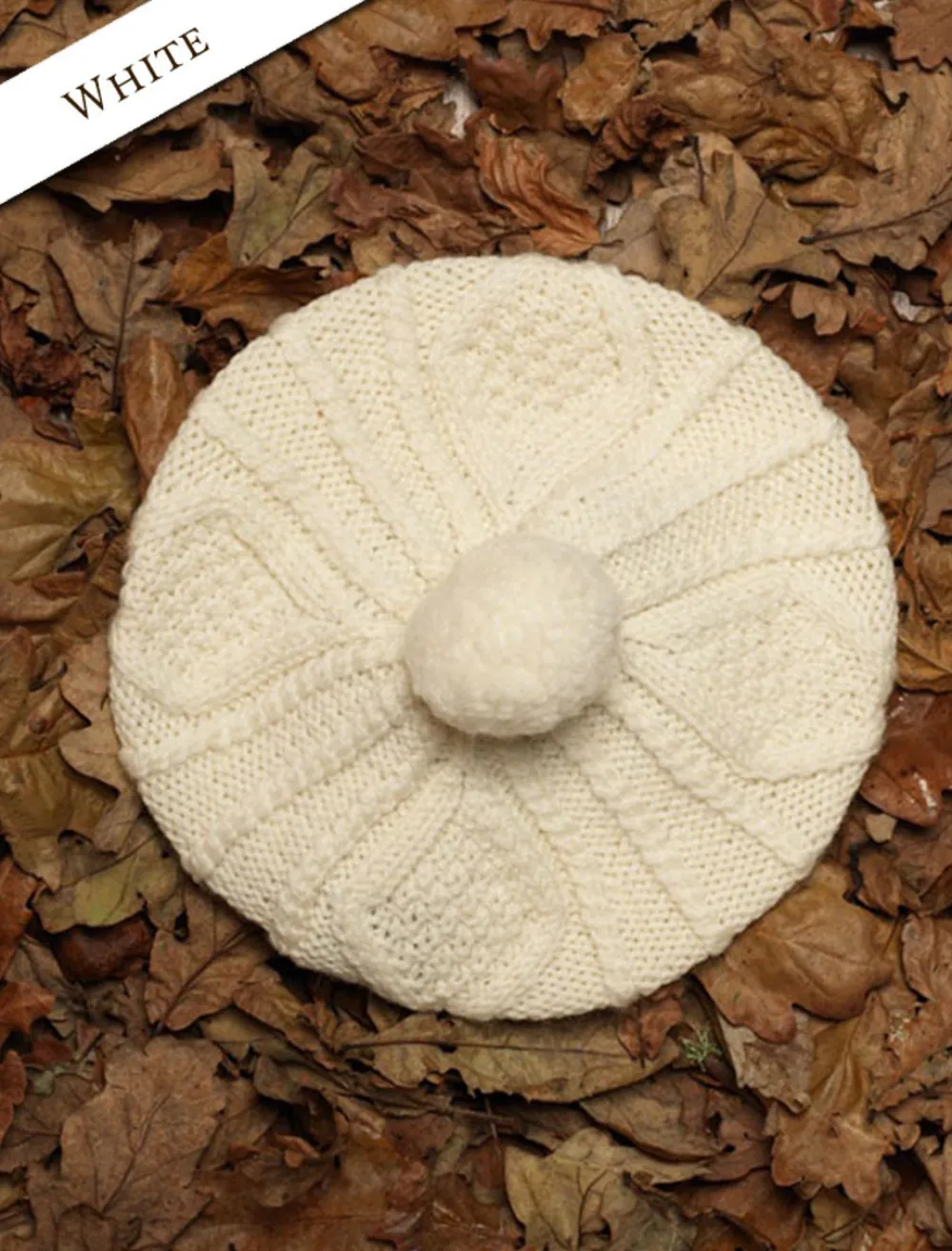 Made of 100% Merino WoolLovely Irish Moss-filled Diamond Aran patternPerfect paired with matching ScarfOne Size Fits All…