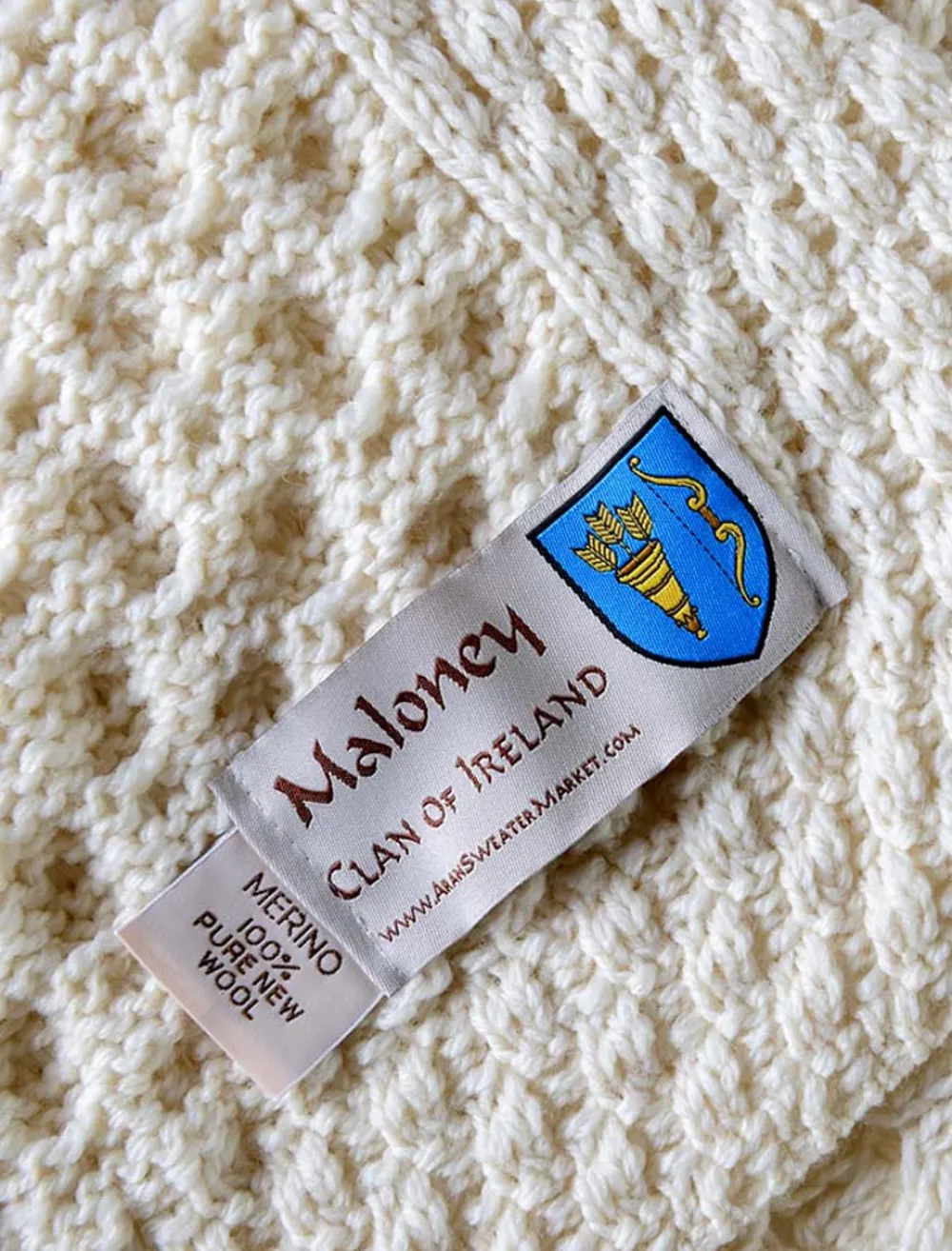 Mallon,Ó Maoileoin.MaloneyClan Aran Throw- )