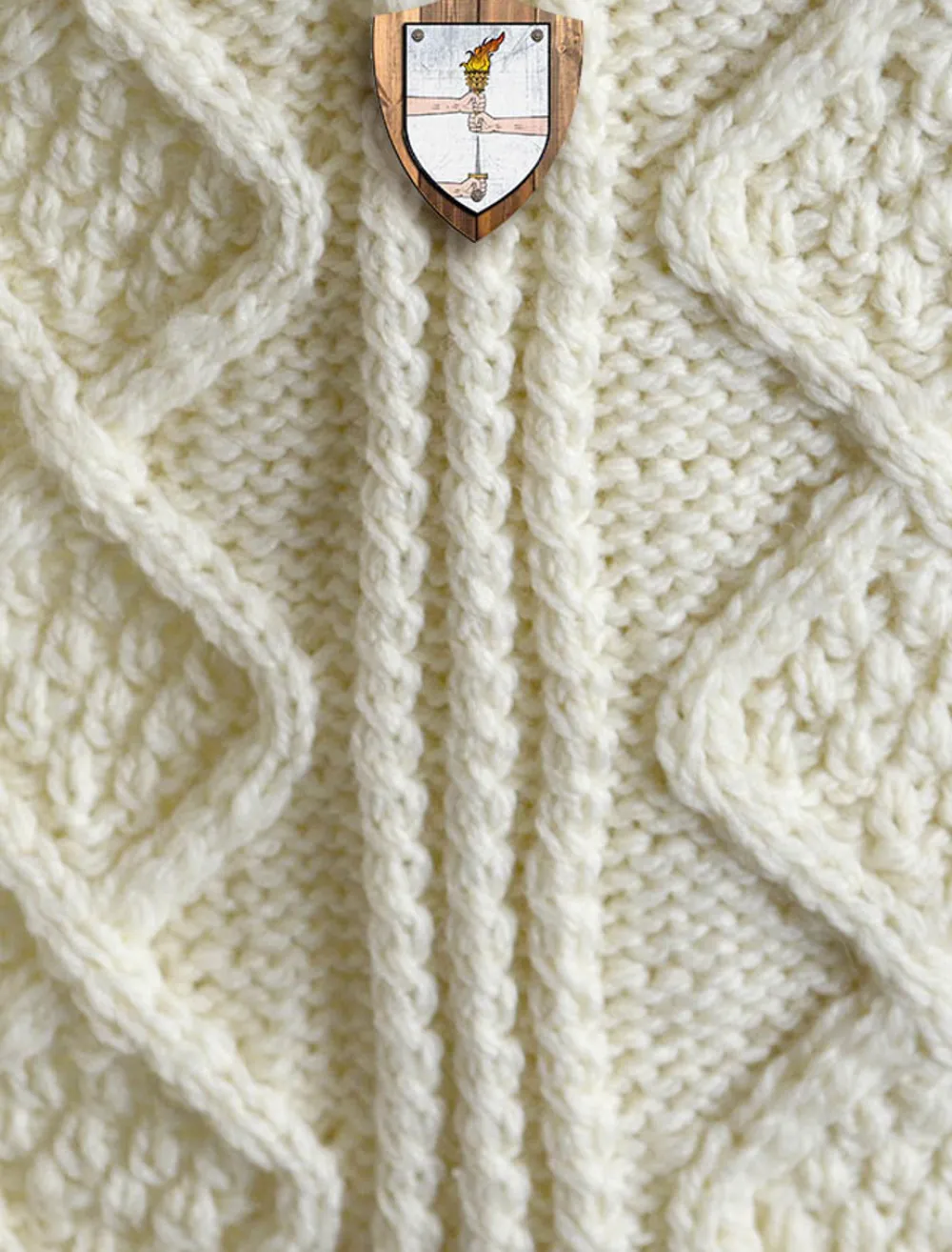 This beautiful SmithClan Aran Throw (measuring 64″ by 40″) has been produced in the traditional báinín (pronounced ‘baw neen’) colour, the natural white of the wool. It comes to you complete with a clan history and crest.