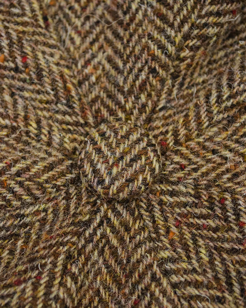 - Herringbone Tweed Design 8 panel cap in traditional brown colour with coloured flecks