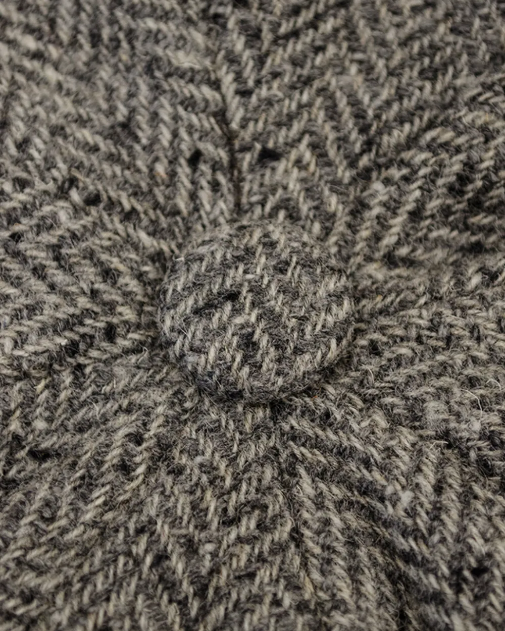 Herringbone Tweed Design 8 panel capProduced using 100% tweedTraditional peak-style flat cap with button fasteningPerfec…