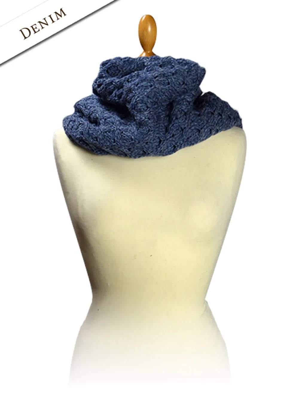 Our Aran Snood Scarf in 100% Merino Wool is sewn in a circle. It can be hand washed or dry cleaned.