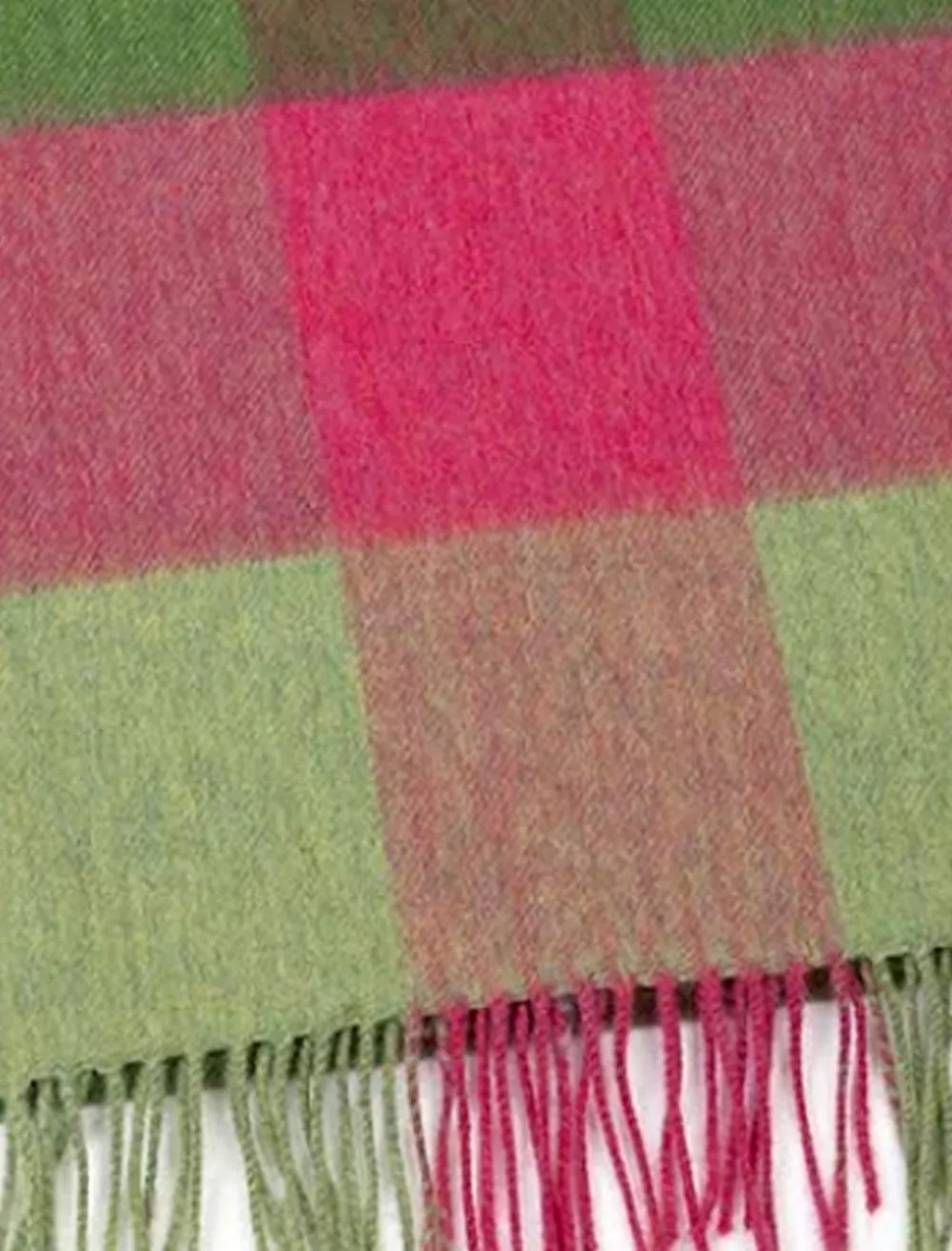 Made in Ireland of 100% brushed soft merino wool30 x 180 cms and 12″ x 71″Pink, Green Fine Merino Check Scarf – Watermel…