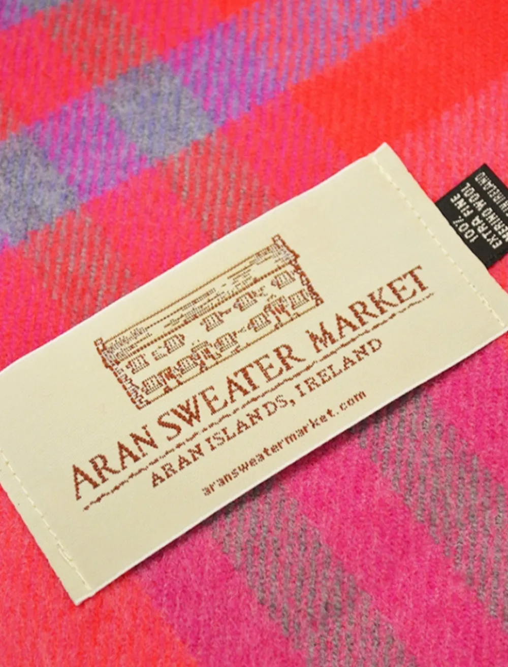 Fine Merino Plaid Scarf – Fuchsia Pink