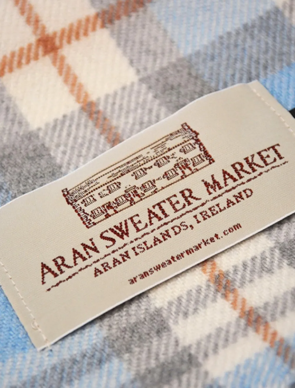 30 x 180 cms and 12″ x 71″Pale blue grey and camel check ) 100% brushed merino scarf. Long scarf ideal for keeping out t…