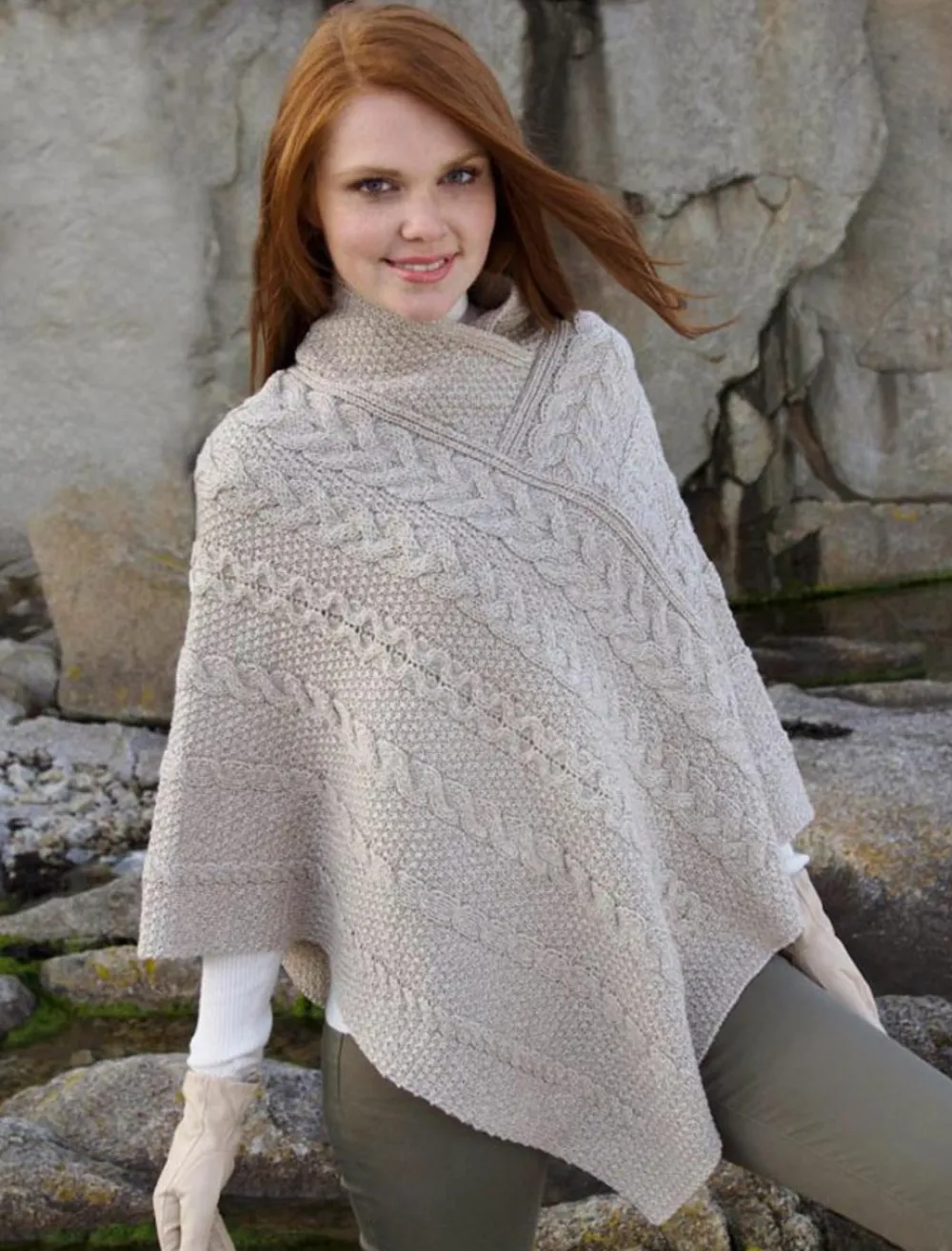 Amodern trend with a classic Aran twist, this poncho is great paired with jeans and boots or a full flowing skirt for a more bohemian chic approach.