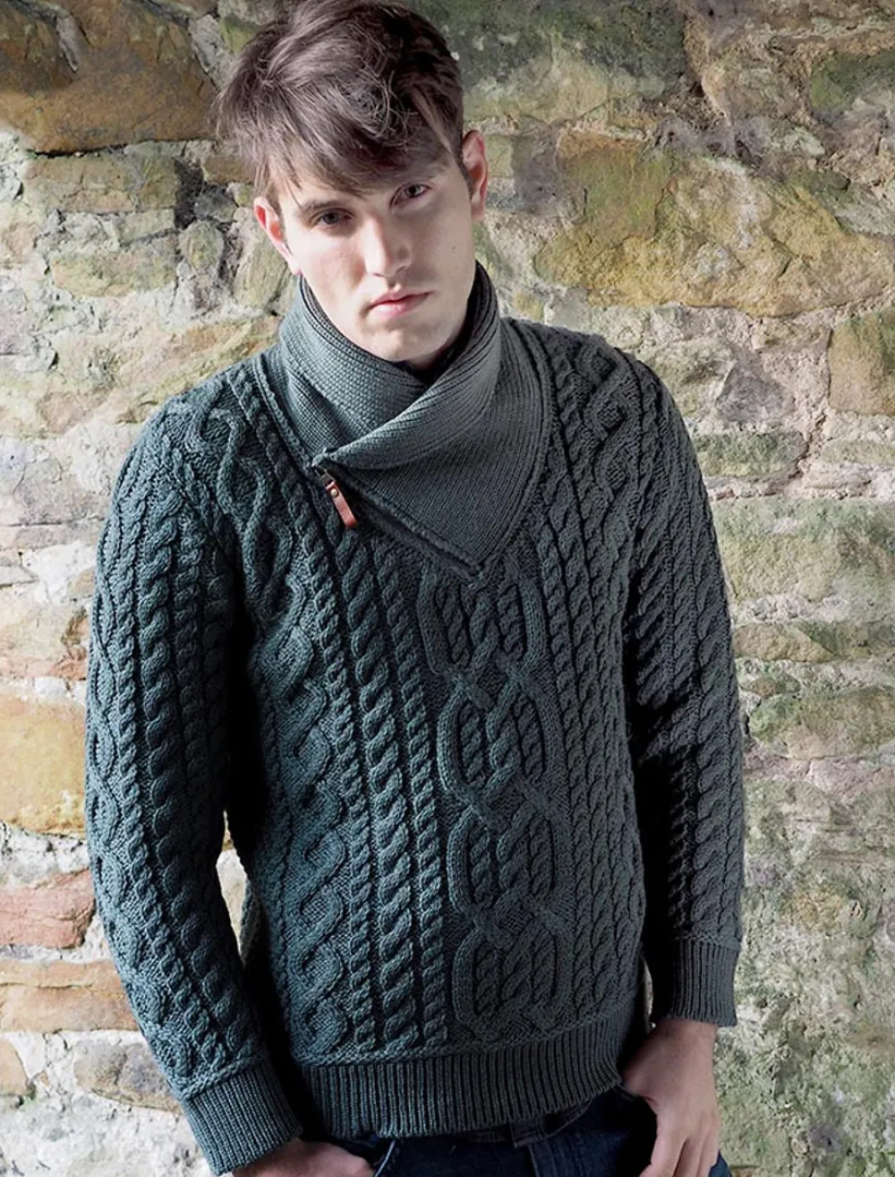 The Aran Zip Shawl Neck Sweaterplaces the emphasis squarely on your neck, with a modern take on a standard shawl neck design. This sweater is made in Ireland from 100% soft merino wool, which is thicker and warmer than synthetic fibre blends. An ideal sweater for the man who likes fashion forward style.