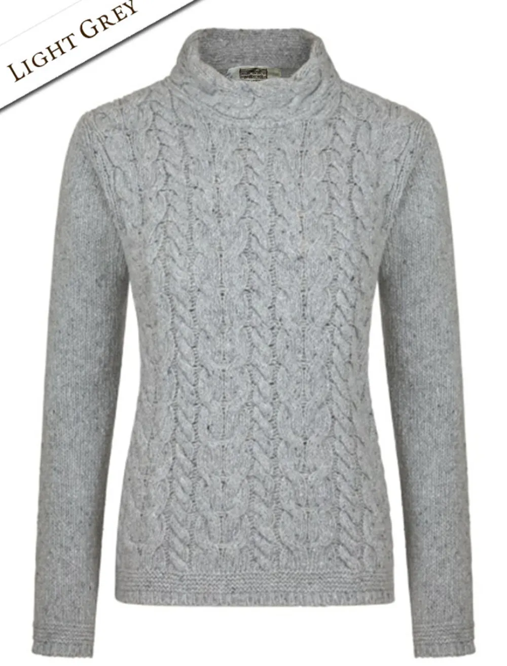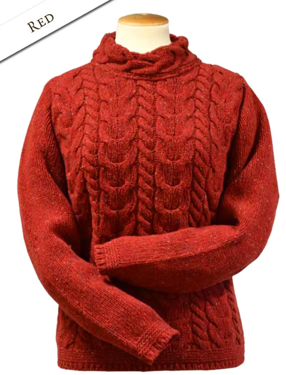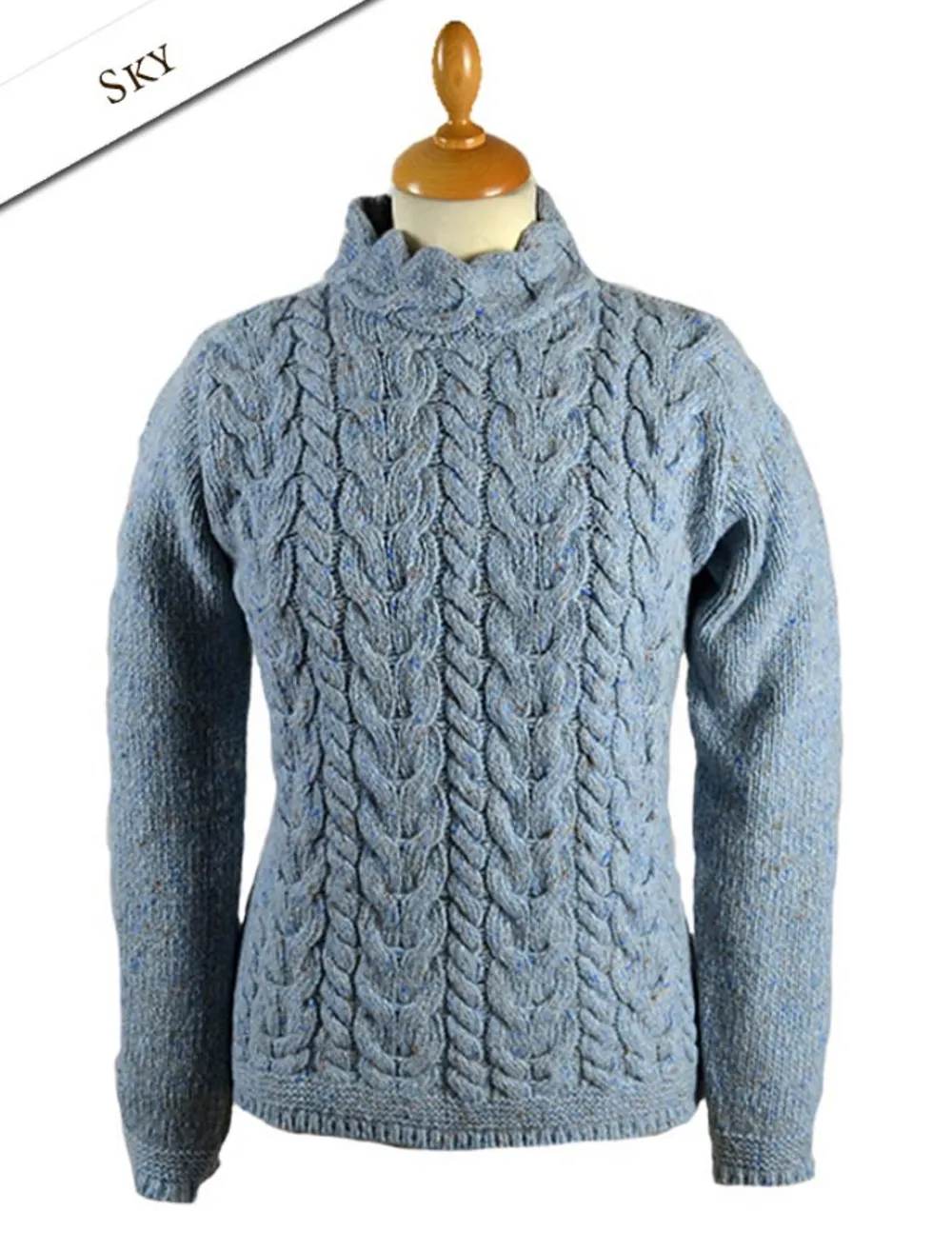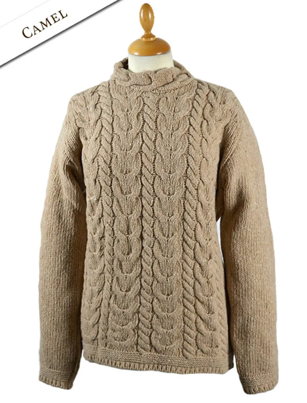 This Aran Cable Sweater features the oversized cable pattern with a mock turtleneck for a classic feminine feel. Its lux…