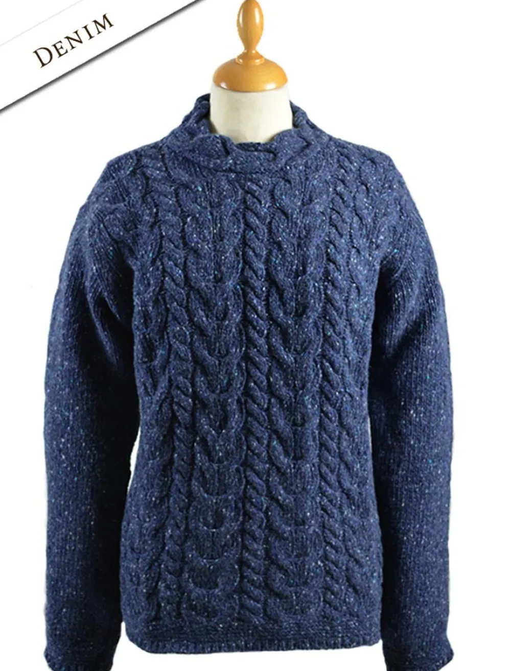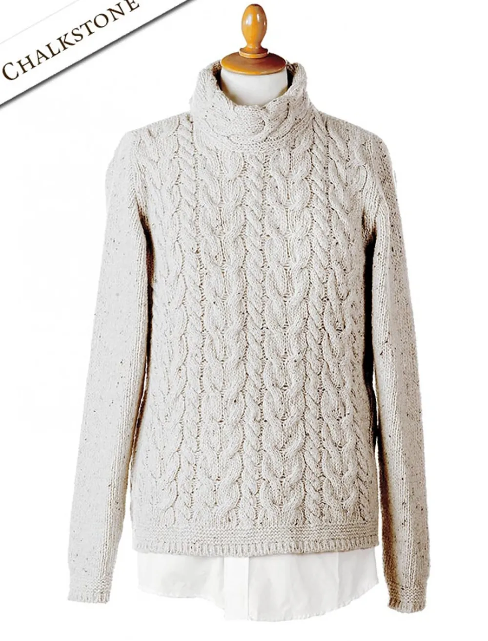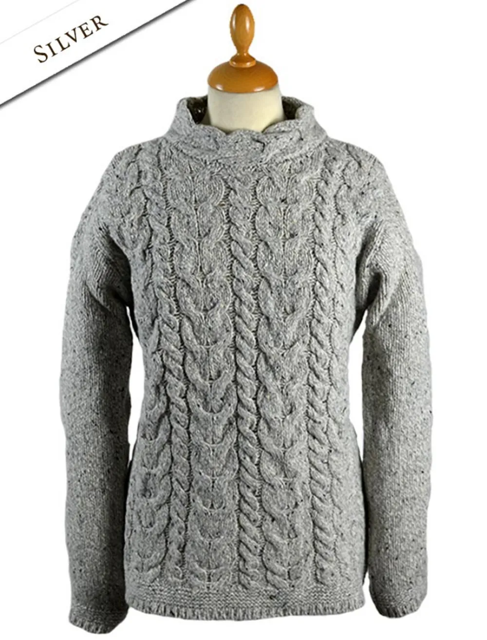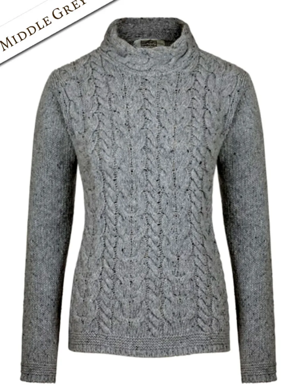 This Aran Cable Sweater features the oversized cable pattern with a mock turtleneck for a classic feminine feel. Its lux…